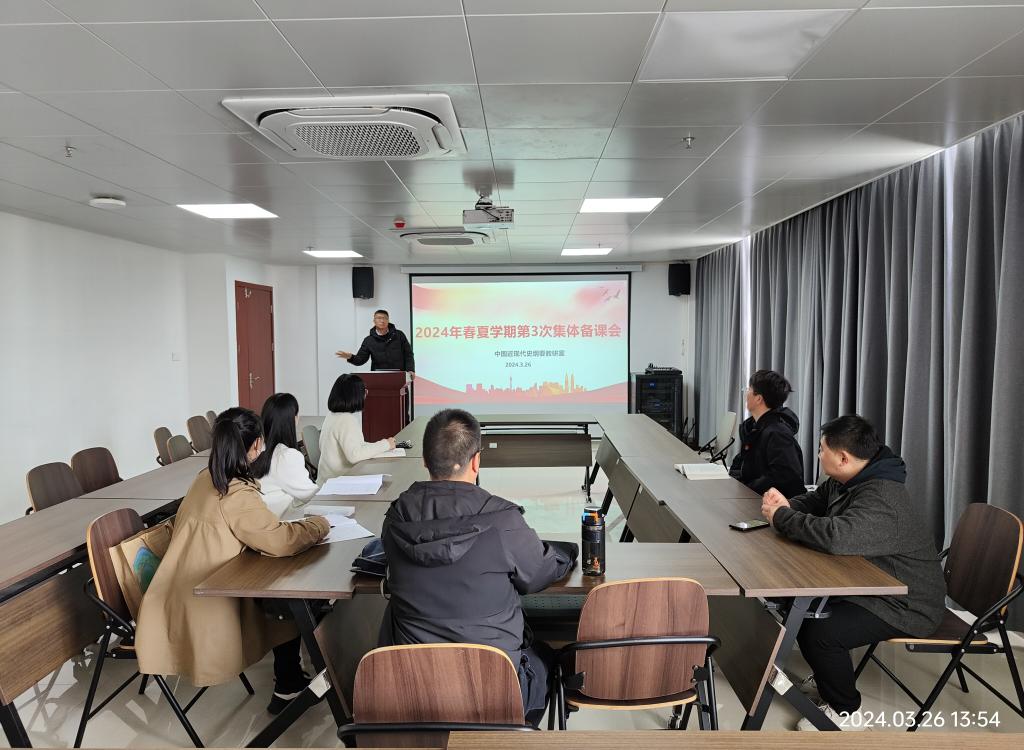 3月26日下午,马克思主义学院中国近现代史纲要教研室在学术交流中心509会议室召开2024年春季学期第三次集体备课会,会议由教研室主任张坤主持。