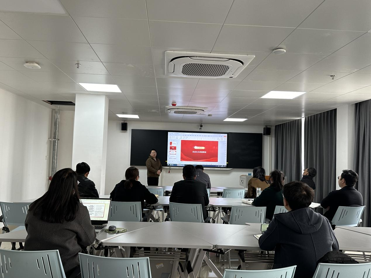 备课会上,张曙光老师从课程导入、国情把握、革命胜利的原因三个方面,向与会教师细致解读了第二章教学思路,马腾骧老师围绕第三章教学重难点、教学案例等进行了讲解说明。
