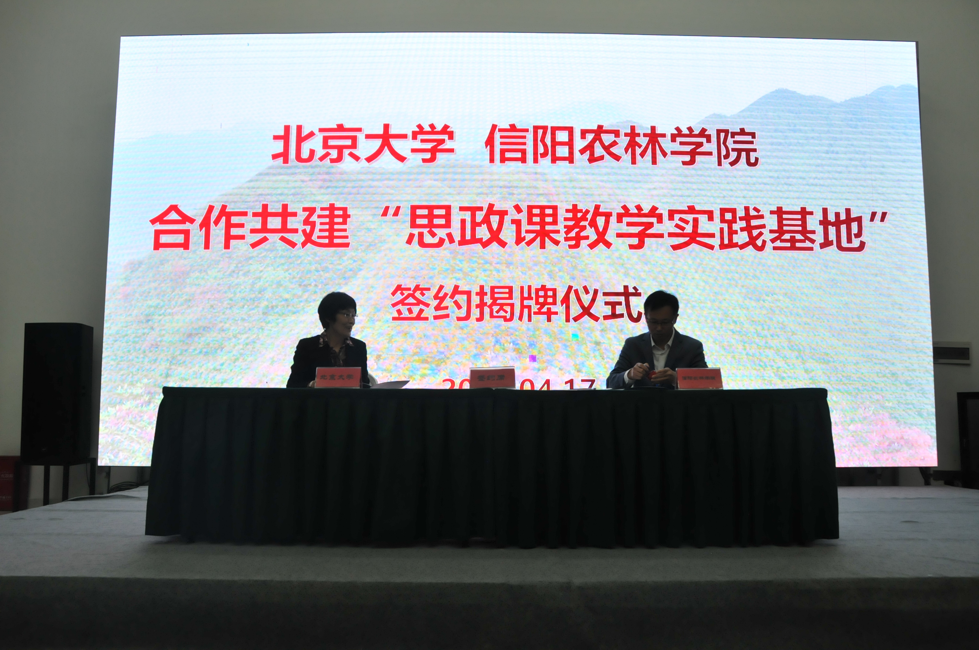 2021年4月17日,北京大学与beat365在线平台官网合作共建“思政课教学实践基地”签约揭牌仪式在信阳市新县成功举行。北京大学马克思主义学院原副院长白雪秋,beat365在线平台官网副校长李益民及两校部分教师代表出席仪式,仪式由beat365在线平台官网马克思主义学院院长邱兴平主持。