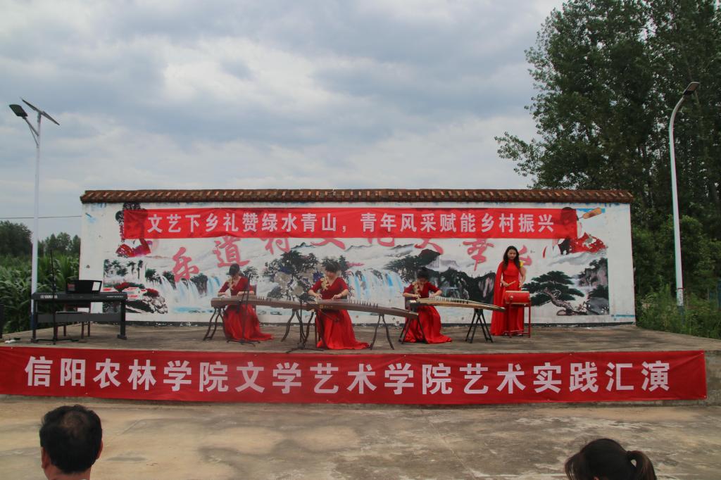 为庆祝建党100周年,进一步丰富党史学习教育载体和形式,让城乡老百姓共享文化成果。7月12日,文学艺术学院在固始县乐道村广场开展送艺下乡文艺汇演主题党日活动。