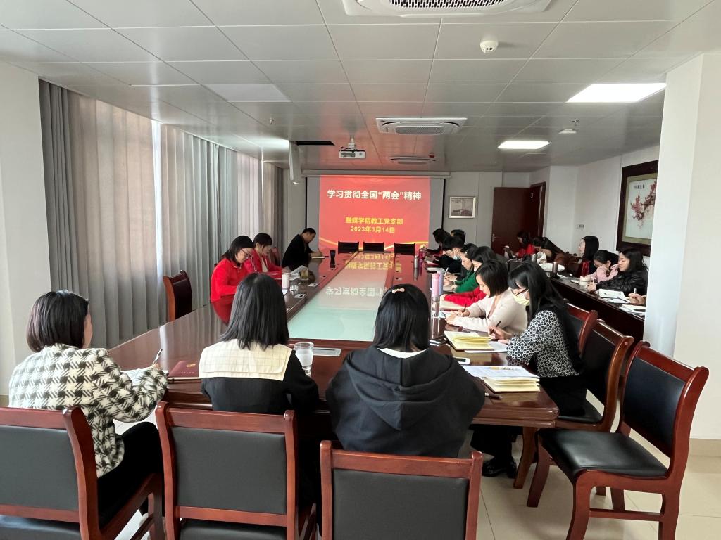 3月14日下午,融媒学院党总支书记关照霞主持召开教职工政治理论学习会,传达学习2023年全国两会精神。