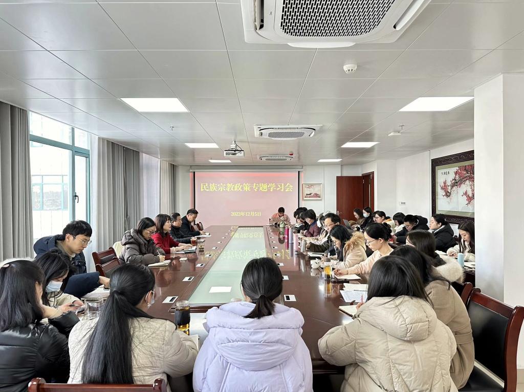 为引导全体教职工深入学习和贯彻习近平总书记关于民族宗教政策的重要论述,宣传和贯彻落实党的民族宗教方针政策,牢牢把握做好民族宗教工作的正确方向,人文与传播学院党总支于2023年12月5日下午,在415会议室召开“学习习近平总书记关于民族宗教政策的主要论述”专题学习会。