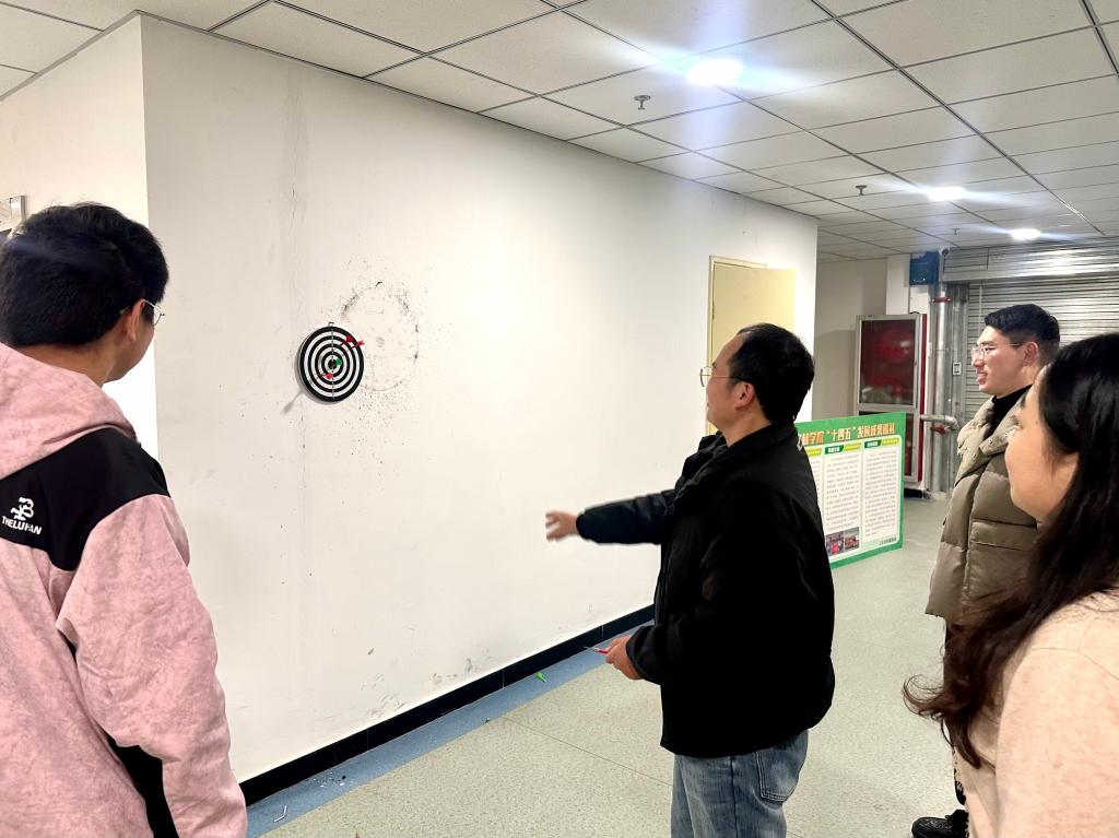 简短而热烈的开场动员后,运动会正式进入比赛环节。首个项目飞镖比赛迅速点燃了现场的热情。平日里执笔耕耘、教书育人的老师们,此刻化身为沉稳的“镖手”。他们屏息凝神,瞄准靶心,手腕轻振——“嗖”的一声,飞镖稳稳扎入目标区域。每当有人投出高分,周围便响起一片真诚的喝彩与鼓励的掌声;偶尔出现的小小失误,也会引来善意的欢笑与“下次更好”的暖心安慰。比赛过程中,专注与乐趣交织,策略与运气并存,现场俨然成了一个充满竞技趣味又其乐融融的大家庭。