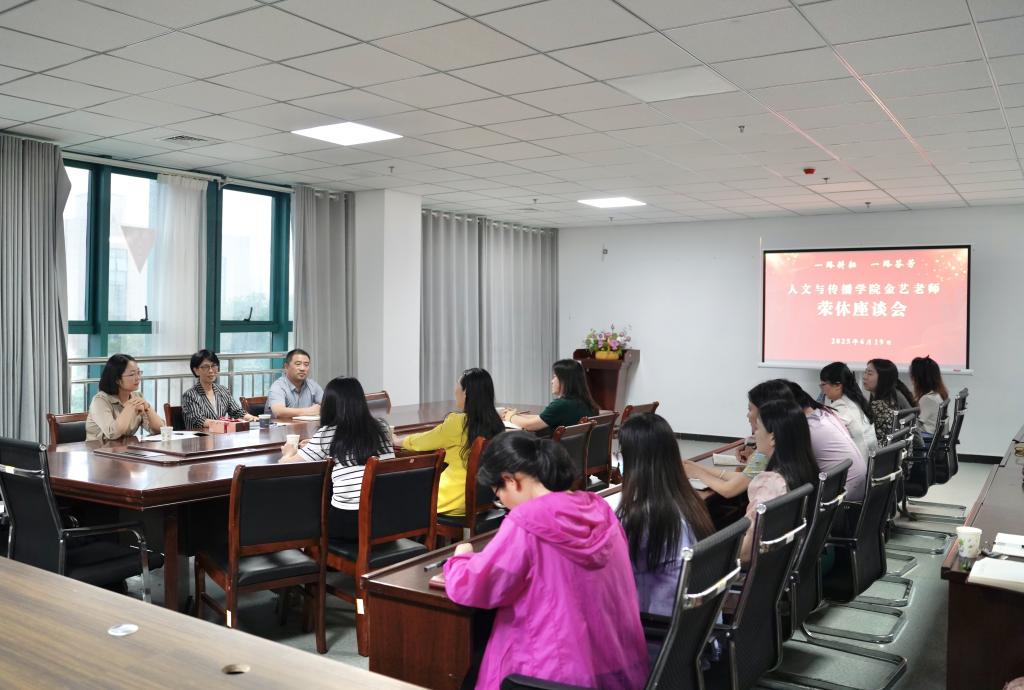 6月19日,人文与传播学院在艺术楼南楼416举办“一路耕耘,一路芬芳”金艺老师荣休座谈会,学校党委副书记王万玲出席会议并致辞,学院班子成员及全体教师参加了座谈会。座谈会由学院党委书记李华清主持。