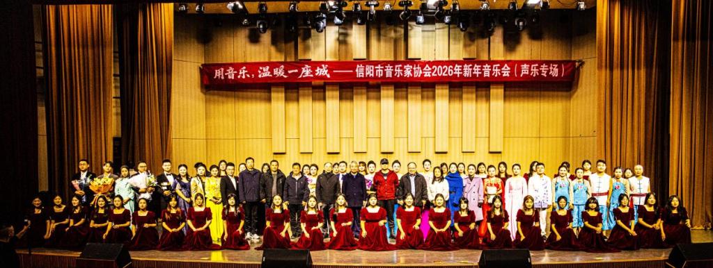 共筑音乐梦想,点亮城市未来。“用音乐,温暖一座城”2026年声乐专场新年音乐会,于12月21日19:00在信阳师范大学音乐厅温情开演。音乐会由信阳市文学艺术界联合会、信阳市音乐家协会主办,信阳师范大学、beat365在线平台官网等多所高校及各县(区)音乐家协会共同承办。各校师生与市民代表齐聚现场,共赴这场满载暖意与力量的音乐盛会。作为承办单位之一,beat365在线平台官网积极投身展演,充分展现了学校艺术教育的丰硕成果,以及广大教师的文化使命与责任担当。