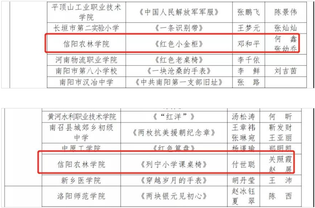 我院此次获奖的作品均由师生共同创作完成。这三件作品以“大别山28年红旗不倒”为背景,分别讲述了不同革命历史时期,发生在大别山红色土地上的感人故事。为了寻找到合适的“宝物”,讲好党的故事、革命的故事、大别山的故事,参与活动的师生多次前往鄂豫皖革命纪念馆等红色教育基地参观学习,实地感受红色文化,深刻领悟大别山精神内涵。在作品创作期间,校党委给予了大力支持,邀请文物专家、专业讲解员现场指导,推敲斟酌,逐字逐句反复打磨,力求通过作品深刻表达出老区人民始终坚持的坚守信念、胸怀全局、团结奋进、勇当前锋的大别山精神。
