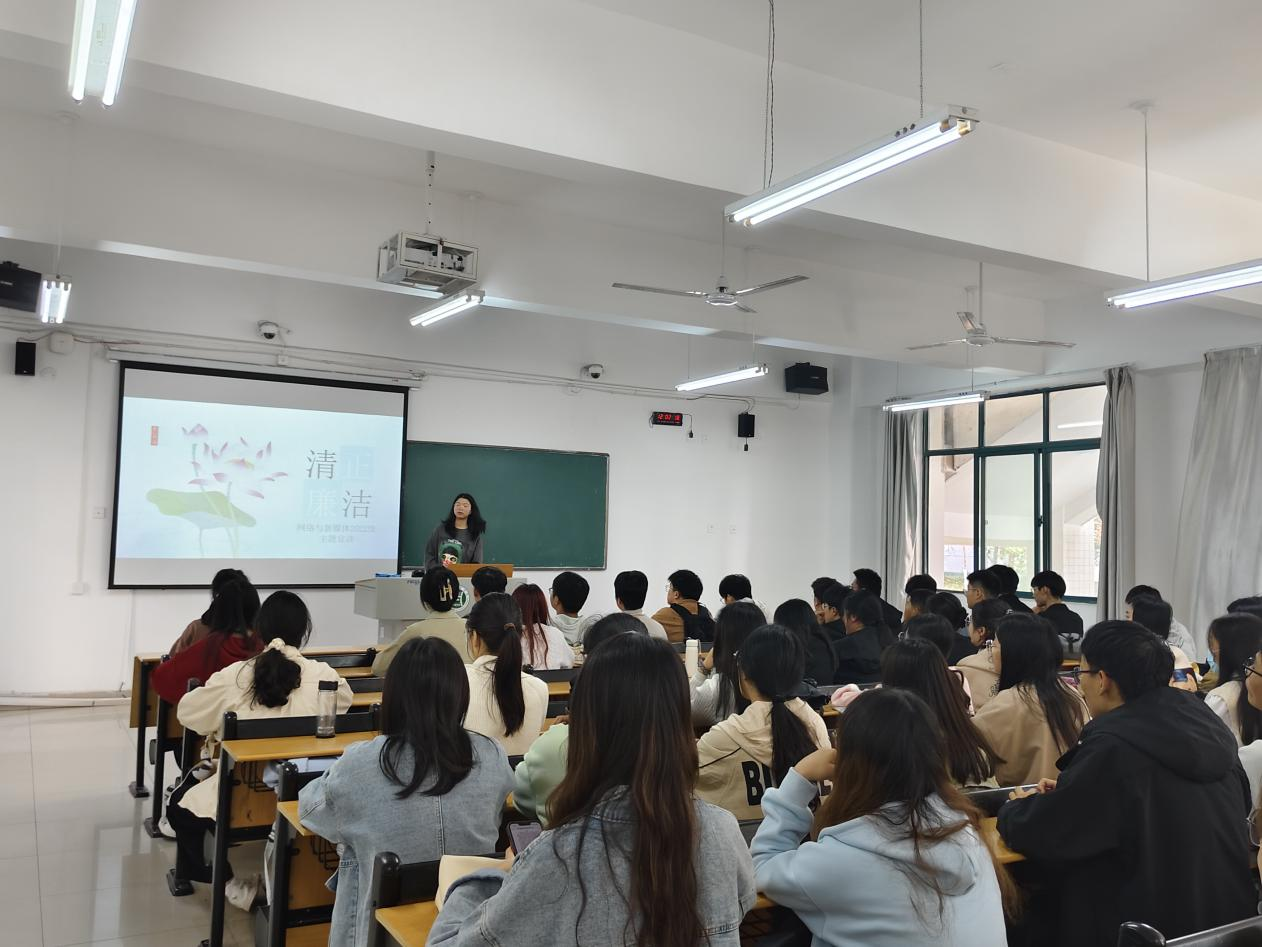 清风扬正气,廉韵沁人心。本次宣讲活动通过理论化宣讲、沉浸式分享、互动式交流的形式使“清廉之风”真正吹入每位同学的心中。引导青年学生打好廉洁的思想基础,树立廉洁自律的风向标,诚实守信、廉洁修身,扣好廉洁人生的“第一粒扣子”,努力成长为担当民族复兴大任的时代新人。(撰稿/王怡凡 摄影/胡甜雨)