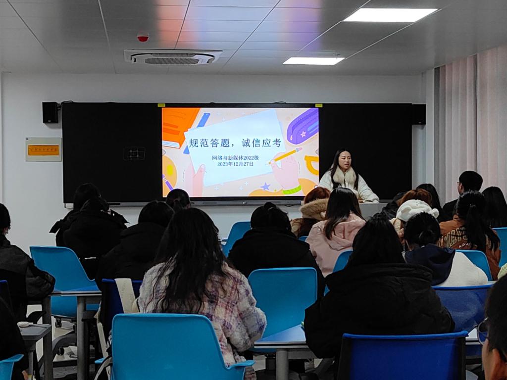 为进一步贯彻落实期末考试考风考纪要求,增强学生诚信意识,营造公平公正的考风,近日,人文与传播学院召开各年级诚信考试主题班会,引导学生树立正确的考试观念,培养他们诚实守信的品质,进一步提高学院整体学风和学术水平。