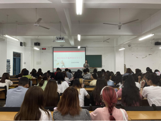 为了进一步提高学生的安全防范意识,帮助学生预防网络诈骗,5月13日文学艺术学院在2教103开展预防电信诈骗主题班会,全体学生参加此次班会。