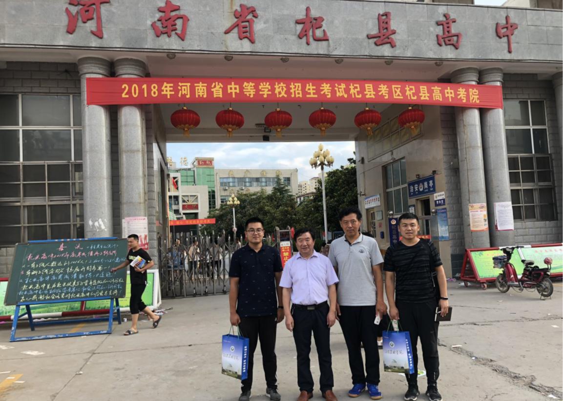 为抓住本科、专科层次学生高考填报志愿的关键时间节点,按照学校统一部署和安排,更有效的落实beat365在线平台官网招生宣传工作, 6月25—27日,文学艺术教学部黄炎军主任、体育教学部李俊主任带领余功一、韩坤键两位老师,赴开封市、杞县、兰考、通许、尉氏县等地开展招生宣传工作。