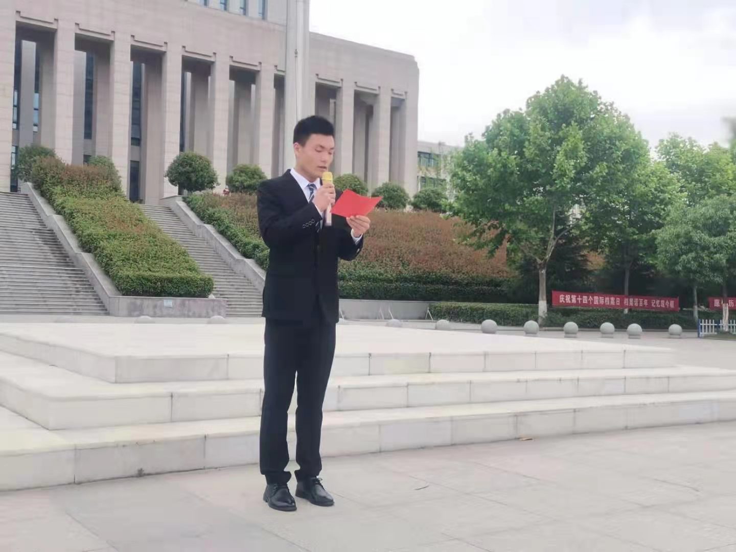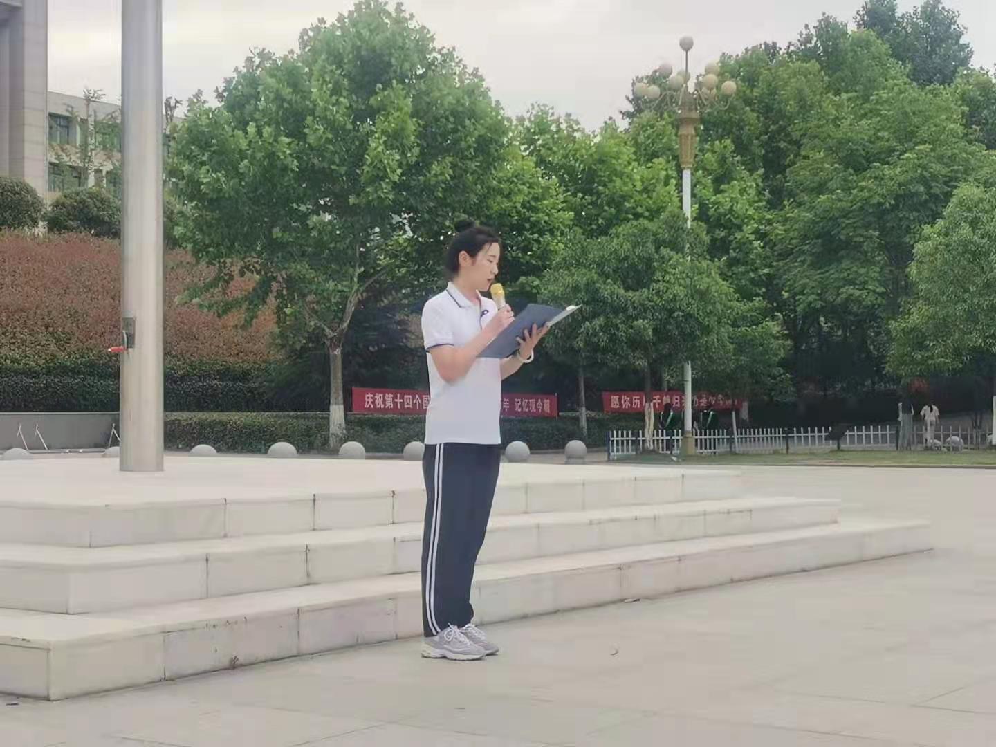 2021年6月7日上午,日暖风和、碧空如洗,文学艺术学院全体师生在汝宁广场举行“传承担当精神,献礼建党百年”为主题的升旗仪式,本次升旗仪式由付世聪同学主持。