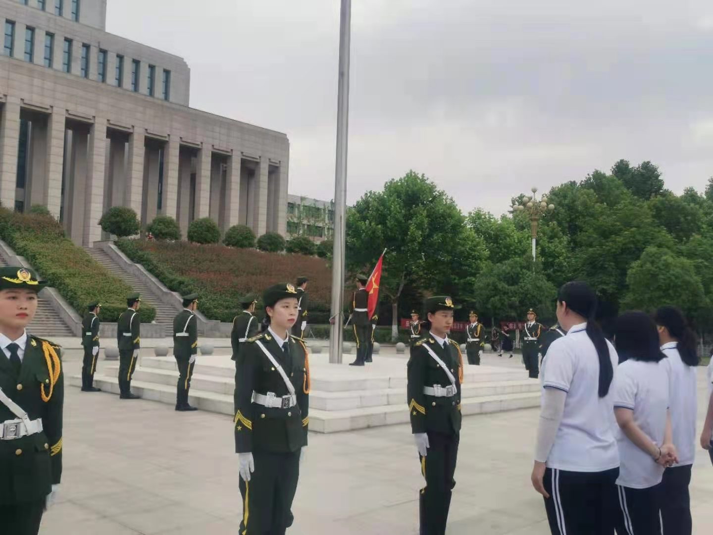 6点50分,英姿挺拔的校国旗护卫队同学护着鲜艳的五星红旗,迈着铿锵有力的步伐,整齐威武地走上国旗台,熟悉的《义勇军进行曲》响起,鲜艳的国旗如同火焰般跳动着。我院全体师同学们满怀敬仰,轻声跟唱,行注目礼。庄严敬礼,在庆祝建党一百周年之际,向伟大祖国致以崇高敬意和深深祝福。