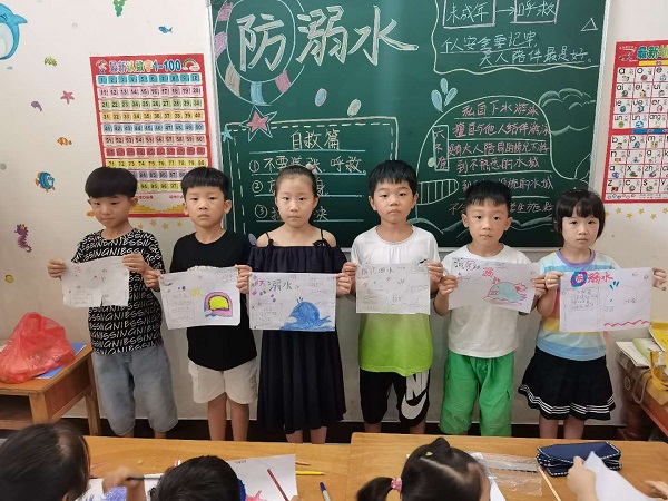 2018级曹菲同学组织社区内的留守儿童来到自己的家中,一起观看《爱心托起的“篮球女孩”》等交通安全教育片,指导他们认识生活中常见的交通标识,让孩子们全面了解交通安全知识,提高防护意识。与此同时,小分队的另一成员毛清林同学也在自己的家中开展“防溺水”安全知识小讲堂,通过观看防溺水视频、讲解防溺水知识,让村里的留守儿童们意识到私自下水游泳玩耍的危险性。2019级2班周紫燕同学把自己的小讲堂设置在暑期陪伴班中,为孩子们热情宣讲“防溺水”安全知识,并指导他们自己动手办一期“安全知识”手抄报。