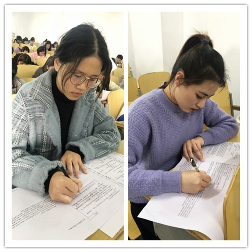本次比赛采用个人赛试卷作答的形式进行,共有来自文秘2018级和2019级的119名学生参加此次比赛。比赛过程中,同学们沉着答题,时而驻笔思考,时而奋笔疾书,安静的考场里上演着一场无声的角逐。赛后,办赛小组迅速组织试卷批改。经过评判,白心语、曹菲、于晴三位同学取得了本次秘书基础理论知识竞赛前三名。