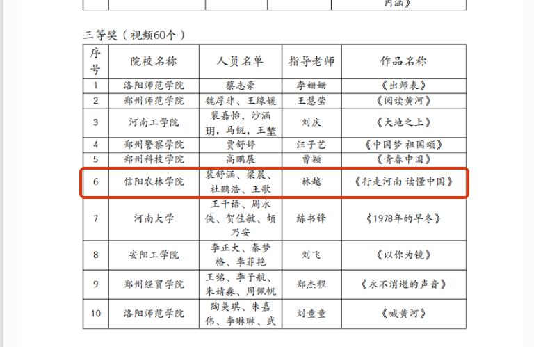 近日,第五届河南省高校“经典润年华·筑梦新时代”主题诵读大赛圆满落幕,人文与传播学院在此次大赛中凭借卓越的表现,荣获三项本科学生组视频三等奖,以及一项“优秀组织者”荣誉,充分展现了学院师生的风采与实力。
