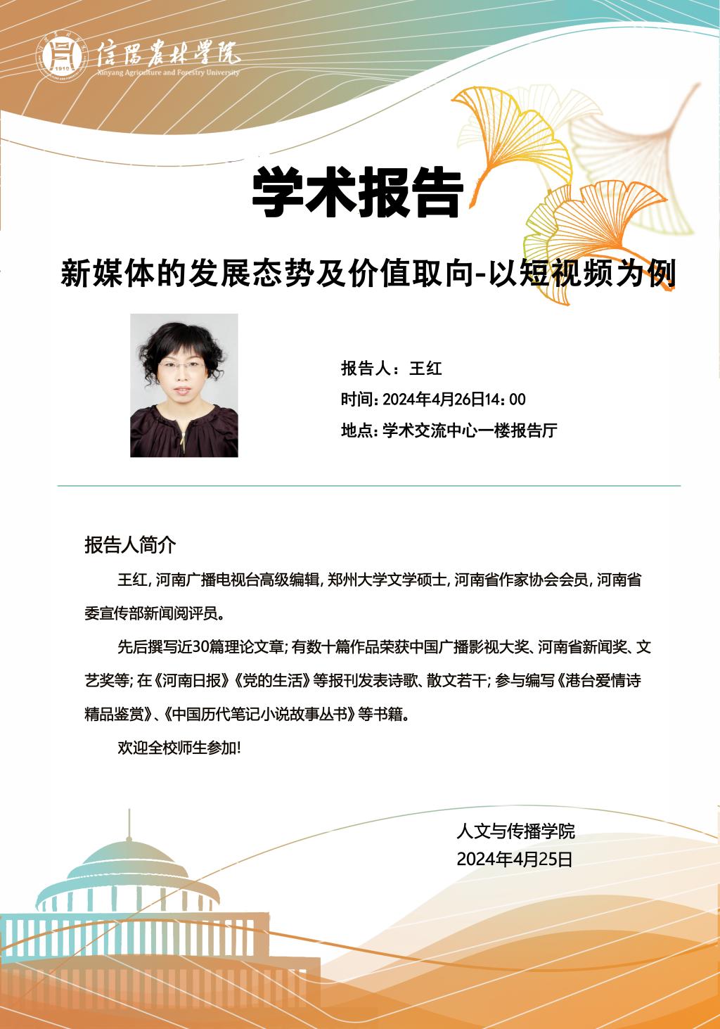 人文与传播学院学术报告——新媒体的发展态势及价值取向—以短视频为例