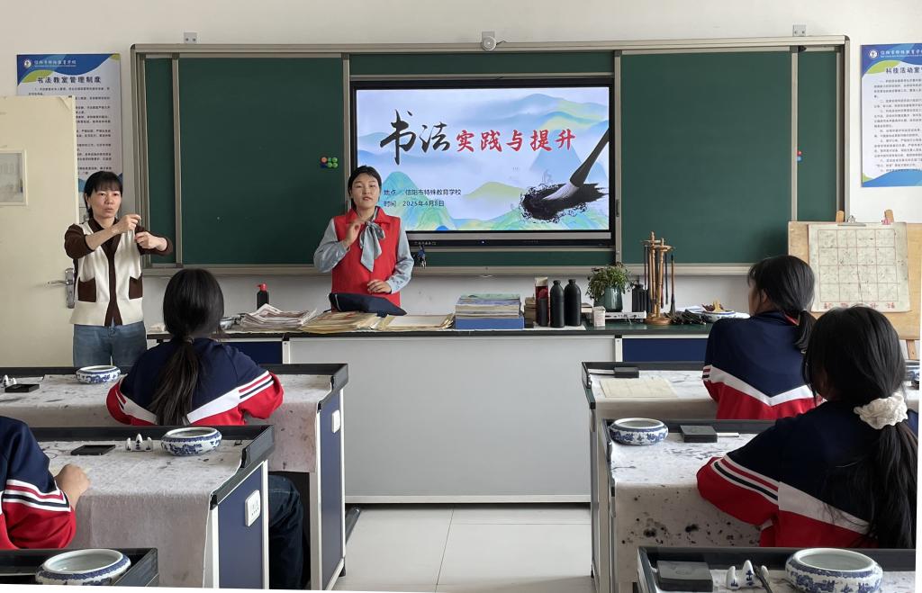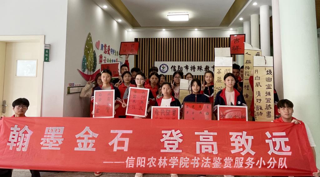 当水墨与指尖共舞,当线条成为无声的对话,一场跨越有声与无声世界的艺术教育实践在信阳市特殊教育学校温暖展开。4月8日,我院公共艺术教研室专任教师李冉带领9名大学生志愿者走进该校,开展了主题为“翰墨金石 登高致远”的书法志愿服务活动,通过定制化书法教学、触感临摹体验、手语互动等形式,为一个班13名聋哑学生提供了书法学习的支持和帮助。