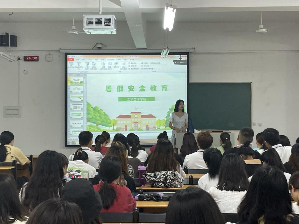 暑假将至,为提高学生假期安全防范意识和避险能力,保障学生生命和财产安全,文学艺术学院于7月3日召开暑假安全教育主题班会,会议由辅导员主持,全体学生参加了此次班会。