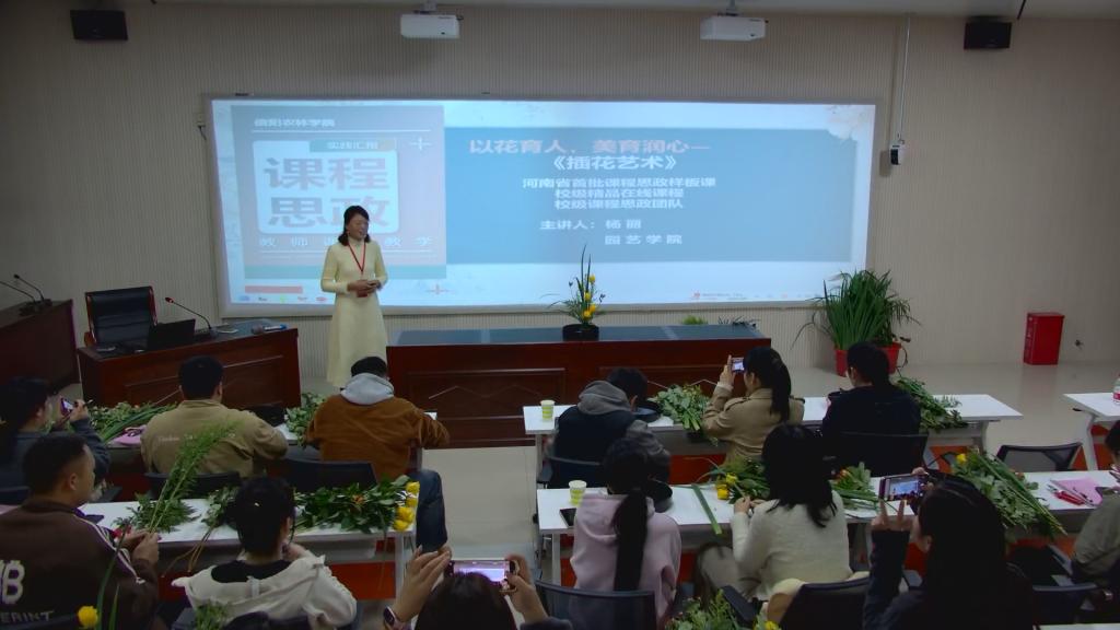 河南省本科高校思政样板课程《插花艺术》负责人园艺学院杨丽副教授,将课程思政与插花实践相结合,展示了实践教学与思政元素的融入技巧,启发了新进教师实践教学课程思政融入的灵感。