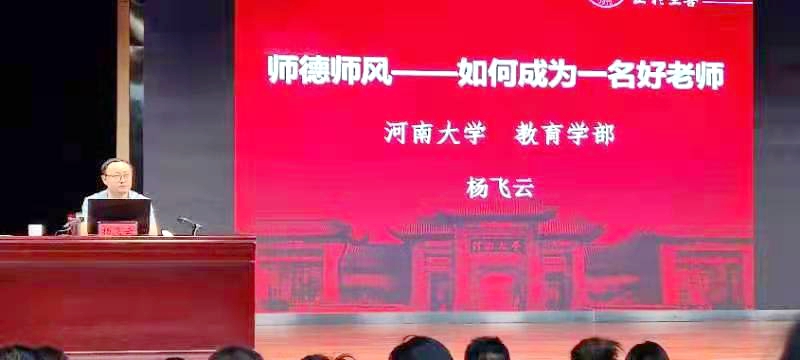 28日上午,河南大学杨云飞副教授为新进教师作了“师德师风——如何成为一名好老师”为题的专题报告。下午,武汉大学陈训威教授,讲授了题为“课程思政与一流课程建设”的精彩报告。