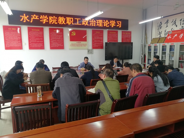 10月27日下午,水产学院在2C330会议室召开专题学习会,会议由水产学院党总支书记郭旭升主持。水产学院全体教职工参加了本次学习。