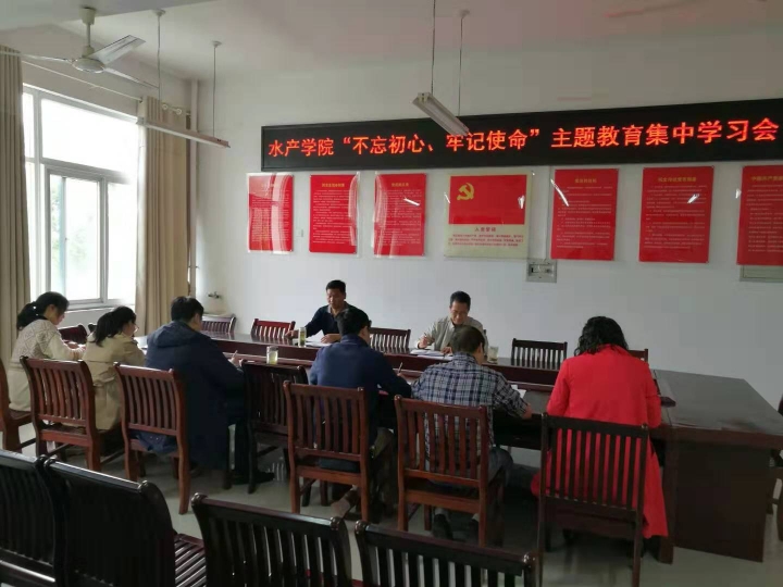 根据学院“不忘初心、牢记使命”主题教育安排,10月9日,水产学院党总支在党员活动室召开“不忘初心、牢记使命”主题教育集中学习会。水产学院领导班子成员、中层副职考察对象、各支部书记参加了会议。会议由水产学院党总支书记郭旭升同志主持。