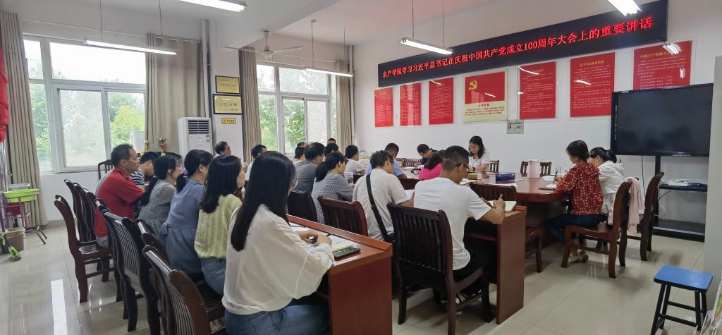 7月6日下午,水产学院在2C330党员活动室召开政治理论集中学习会,集中学习了习近平总书记在庆祝中国共产党成立100周年大会上的重要讲话。水产学院全体教职工参加了会议。会议由水产学院党总支书记、院长郭旭升主持。
