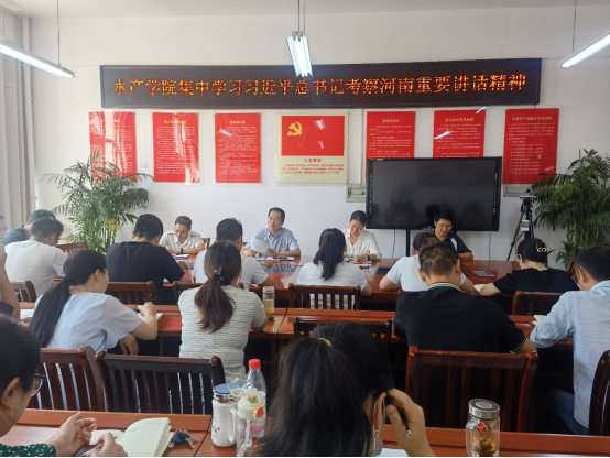 会上,全体教职工还共同学习了省委省政府《关于贯彻落实习近平总书记视察河南重要讲话精神支持河南大别山革命老区加快振兴发展的若干意见》、信阳市《贯彻落实〈中共河南省委河南省人民政府关于贯彻落实习近平总书记视察河南重要讲话精神支持河南大别山革命老区加快振兴发展的若干意见〉三年行动方案》及beat365在线平台官网《服务和助推信阳大别山革命老区加快振兴发展行动计划》。与会教职工表示将进一步认真学习贯彻习近平总书记考察河南重要讲话精神,积极对接信阳乡村振兴重点任务,打造“水库生态渔业”和“名特健康养殖”科技服务特色,争取在服务“两个更好”上迈出更大步伐。(撰稿人:孟瑾;审稿人:晏方舟;终审人:黄光玲)