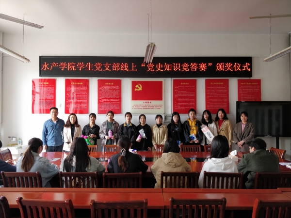 为扎实开展党史学习教育,增强学习效果,近日,水产学院学生党支部开展了线上“党史知识竞答赛”活动。支委会精心准备了党史知识竞答试卷,试卷共100题,支部全体师生党员、全院入党积极分子通过线上扫码答题的方式,积极参与比赛。竞答赛共评出一等奖1名,二等奖2名,三等奖3名,参与奖10名。4月28日中午,学生党支部为获奖的师生颁发了奖品。此次线上“党史知识竞答赛”活动激发了师生学习党史的热情,以赛代学,取得了良好的效果。(水产学院 晏方舟)