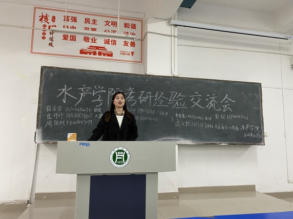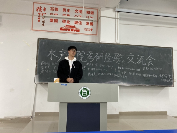 2021年4月7日,在一教A105教室,水产学院学生党支部召开“一党员一特色”系列活动--考研经验交流会。今年考研成功的学生党员代表薛苗苗、牛军胜、彭欣,杨子莱等参加了此次交流会。 学生党员代表从择校、长期规划、短期计划、心态调整,以及在备考过程中好的经验、应当避免的失误等方面详细地向大家讲述了自己的经历,帮助同学们明确目标,准确自我定位,做好规划,专心复习,调整好心态,全力以赴。准备考研的同学们针对自己的疑惑,向党员学长学姐们提问问题,学生党员们毫无保留将自己的经验教训传授给在座的每一个同学。现场气氛热烈,18级的同学们纷纷表示受益匪浅,将以党员们为榜样,向党员们看齐,力争来年取得考研佳绩。(水产学院 晏方舟)