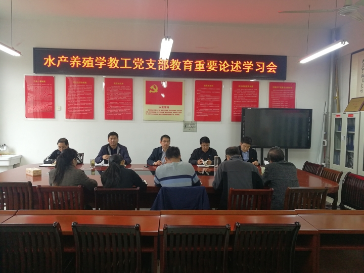 2020年10月6日,水产养殖学教工党支部在实验楼2C330开展党课学习活动,深入学习《习近平总书记教育重要论述讲义》,副校长赵聘莅临指导。参加活动的还有水产学院院长杨东辉、副院长伦峰、副院长吴坤杰以及支部其他党员教师。党课由支部书记冯德祥主持。