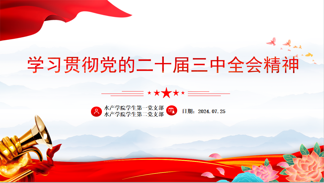 为深入学习贯彻中国共产党第二十届中央委员会第三次全体会议精神,7月25日上午10时,水产学院学生第一、第二党支部召开线上专题学习活动,全体学生党员参加会议进行集体学习和交流分享。