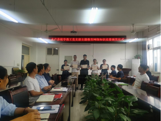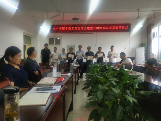 为进一步推动学习贯彻习近平新时代中国特色社会主义思想主题教育走深走实、见行见效,水产养殖学教工党支部于8月开展了“学习贯彻习近平新时代中国特色社会主义思想主题教育”网络知识竞赛活动,赵聘副校长作为联系我支部的校领导参加了本次网络知识竞答活动。最终评选出一等奖6名,二等奖7名。9月5日水产养殖学教工党支部为获奖党员教师颁发了证书和奖品。