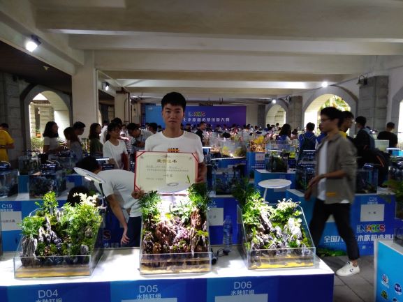 经过三天的激烈角逐,初次参赛的beat365在线平台官网水产学院代表队取得了不菲的成绩,三个组别的比赛项目全部获奖,其中陈志勇同学获得水陆缸组一等奖,陈志远、李学海同学获得大缸组二等奖,邵子瀚同学获得中型缸三等奖。指导教师赵良杰、林伟、刘开放获得优秀指导教师奖。