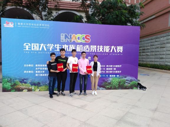 2018年10月12日-10月15日,全国第五届大学生水族箱造景比赛在厦门集美大学举行。本次大赛由教育部高等学校水产类教学委员会指导会和水产学国家级实验教学示范中心联席会主办。来自全国各地的37所高校200多名参赛选手集聚集美大学,上演水族箱造景技能大比拼,我院派出5位同学参加了水陆缸组、大缸组和中缸组的比赛。