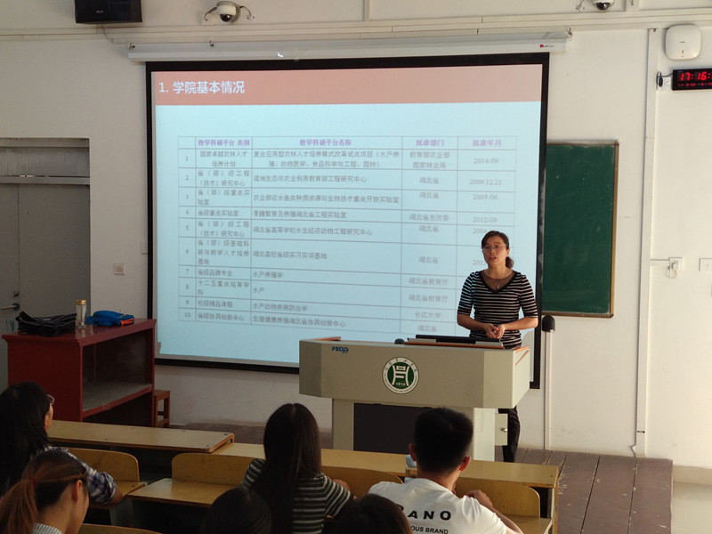 2018年9月29日下午,长江大学动物科技学院许巧情教授应邀来水产学院,在2教306教室为2015级和2016级水产养殖学本科班和动科院学生进行了考研讲学。水产学院伦峰老师参加并主持。