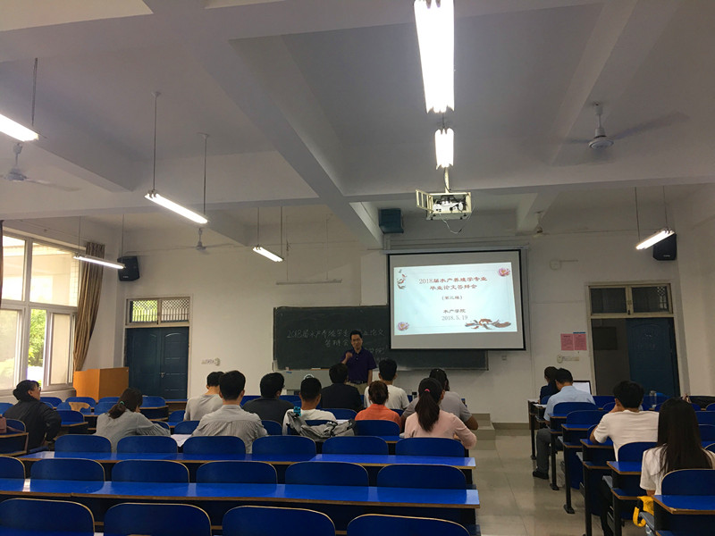 5月19日上午8:00,2018届水产养殖学专业毕业论文答辩会在教学楼A103、A104、A105、A204教室分四个答辩小组进行,共有53名学生参加了毕业论文(设计)答辩,2016级水产养殖学专业部分本科学生旁听了答辩会。