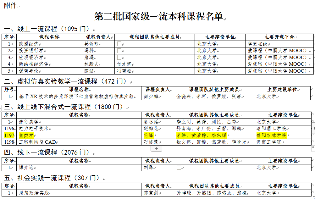 近日,教育部发布《教育部关于公布第二批国家级一流本科课程认定结果的通知》(教高函〔2023〕7号),公布了第二批国家级一流本科课程名单,我院伦峰副教授主持的《鱼类学》课程获批国家级线上线下混合式一流本科课程,为河南省高校水产类第一门国家级一流本科课程。