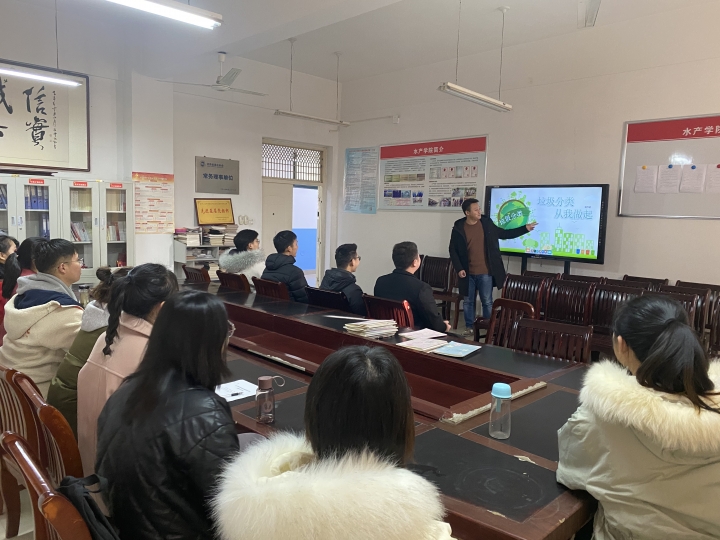 建设优美、整洁、靓丽的校园环境,是所有在校大学生义不容辞的责任;建设干净、整洁美丽的信农,更是信农学子的心声。为积极响应生活垃圾分类工作的号召,大力倡导低碳生活,保护我们生存的环境,水产学院各年级辅导员老师于12月9-10日举办了“垃圾分类,从我做起”系列主题班会,带领同学们感受垃圾分类为校园生活以及城市生活所带来的好处与便利。