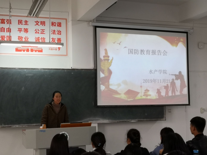 掌握国防知识,加强国防建设,是当今大学生的新时代使命。为进一步加强当代大学生国防意识,增强国防教育观念,培养学生们的爱国情怀,11月21日下午15点,水产学院武装专干李建玲在1教105进行了一次国防教育知识讲座,水产学院18级、19级学生聆听了此次讲座。