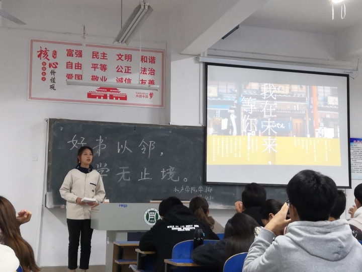 在4月23日“世界读书日”到来之际,为使大学生养成良好的阅读习惯,帮助大学生提高人文素养,使大学生自觉践行习近平新时代中国特色社会主义思想,4月10日晚6点50,水产学院在1教A105举办了“与书香久别重逢”读书月系列活动。参加此次活动的评委有水产学院辅导员李建玲及学生会干部,本次的比赛由18级原嘉城、孙俊同学主持,18级全体学生参加此次演讲比赛。