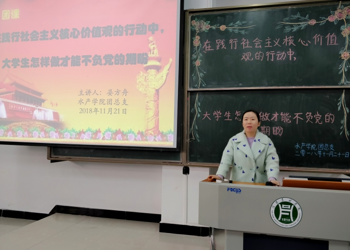 水产学院团总支开展主题团课——“在践行社会主义核心价值观的行动中,大学生怎样做才能不负党的期盼”