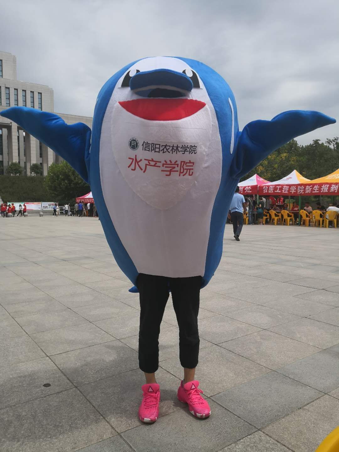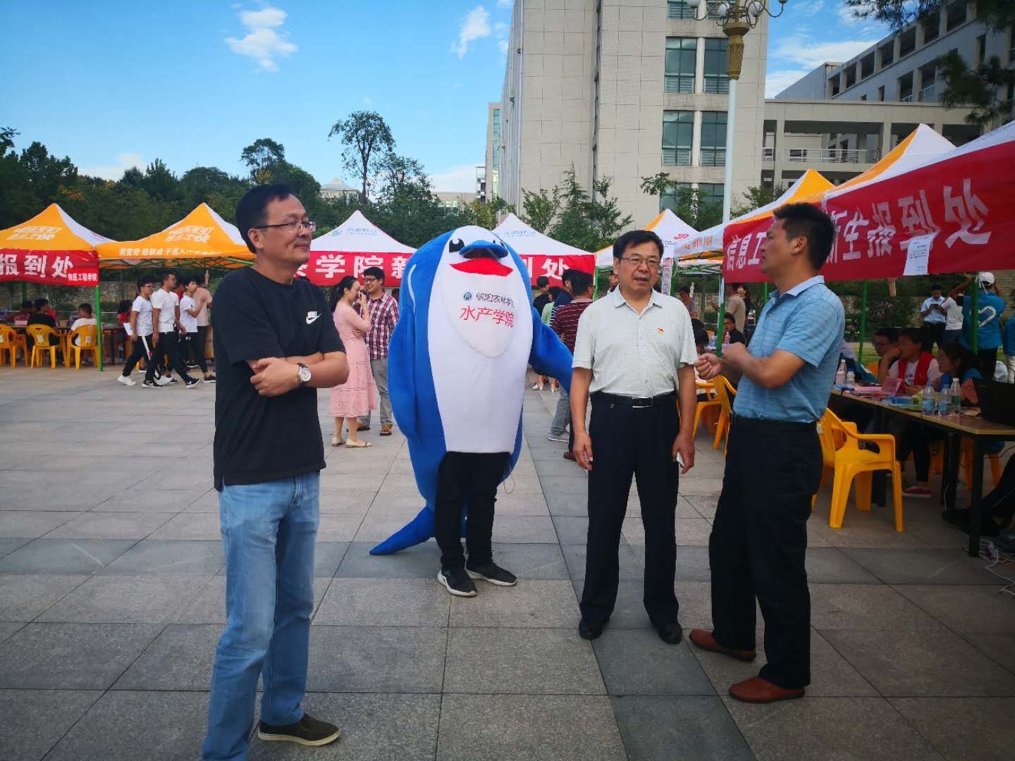 八方来客,相约九月,伴随着日丽和风,水产学院又迎来了一批朝气蓬勃的新面孔。我院今年的迎新工作,除了一如既往地为2018级新同学提供热情周到的服务外,还有一个温馨有特色的秘密武器——海豚人偶。志愿者们争相穿上印着“beat365在线平台官网水产学院”字样的海豚人偶在迎新现场来回穿行,憨态可掬,喜感十足。只见他热情的与来往的新生打招呼,时不时还跳上一段可爱的舞蹈,引得同学们哈哈大笑,迎新现场气氛轻松又热烈。此外,水产学院还为每位新同学送上了一只海豚毛绒玩具,旨在突显水产特色,增强新同学对水产专业的兴趣。