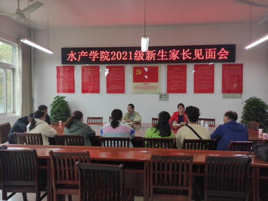 10月8日下午,水产学院党总支书记、院长郭旭升,党总支副书记黄光玲、新生辅导员与新生及家长代表进行座谈会,会上郭旭升院长对学院专业特色进行了简单的介绍,帮助新生和家长初步了解专业特点,提早规划大学生活,并对家长和新生的问题进行现场解答。