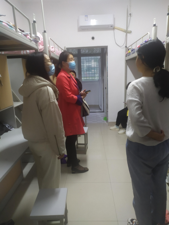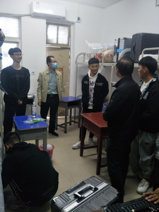 座谈会结束后,郭旭升一行到宿舍看望2021级新同学。每到一个宿舍,老师们都亲切地与同学们进行交谈,了解他们的家庭情况,询问学生有什么困难,提醒同学们注意远离校园贷、邪教传播等,鼓励同学们在校期间认真学习、处理好宿舍人际关系、注意用水用电安全、养成良好的生活习惯。