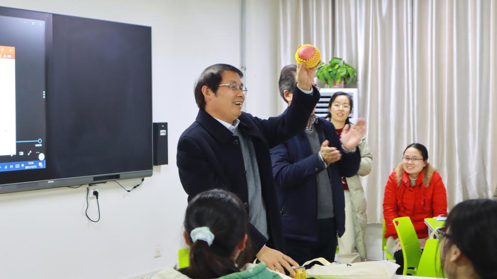 最后,全体与会领导老师为考研学子发放了“考研大礼包”。今年学院精心为每一位考研学子准备了“考研大礼包”,内有赵校长和郭院长签名的祝福卡片1张、“福”字口罩1包、“金榜题名”袜子1双、红牛饮料1瓶、苹果1个、橙子1个。希望帮助同学们抵御天气寒冷,充实内心温暖。同学们们纷纷表示一定会迎难而上,实现考研梦想,不辜负学校对自己的培养。
