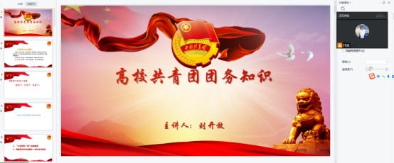 为进一步加强学院新生共青团组织建设,切实提高班级团员的政治理论素养和团务工作能力,推动全院共青团工作的深入开展,9月14日,水产学院团总支书记刘开放利用腾讯会议召开了“光荣的中国共产主义青年团”专题培训会。新生辅导员和2022级全体新生参加了此次培训会。