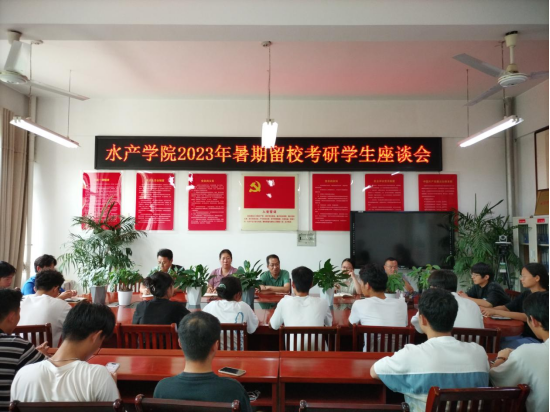 七月骄阳似火,7月31日下午,水产学院党总支书记、院长郭旭升带领学院相关教师与部分学生代表,在学院会议室召开2023年暑期留校考研学生座谈会,会议由水产学院党总支副书记黄光玲主持。
