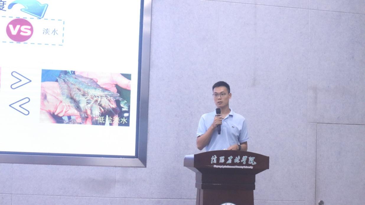韩凤禄博士用浅显易懂的语言为师生们介绍了凡纳对虾生长发育各阶段的性腺发育特征和团队的研究成果,同时也对海南大学海洋生物与水产学院做了详细的介绍,鼓励大家积极报考海南大学硕士研究生。