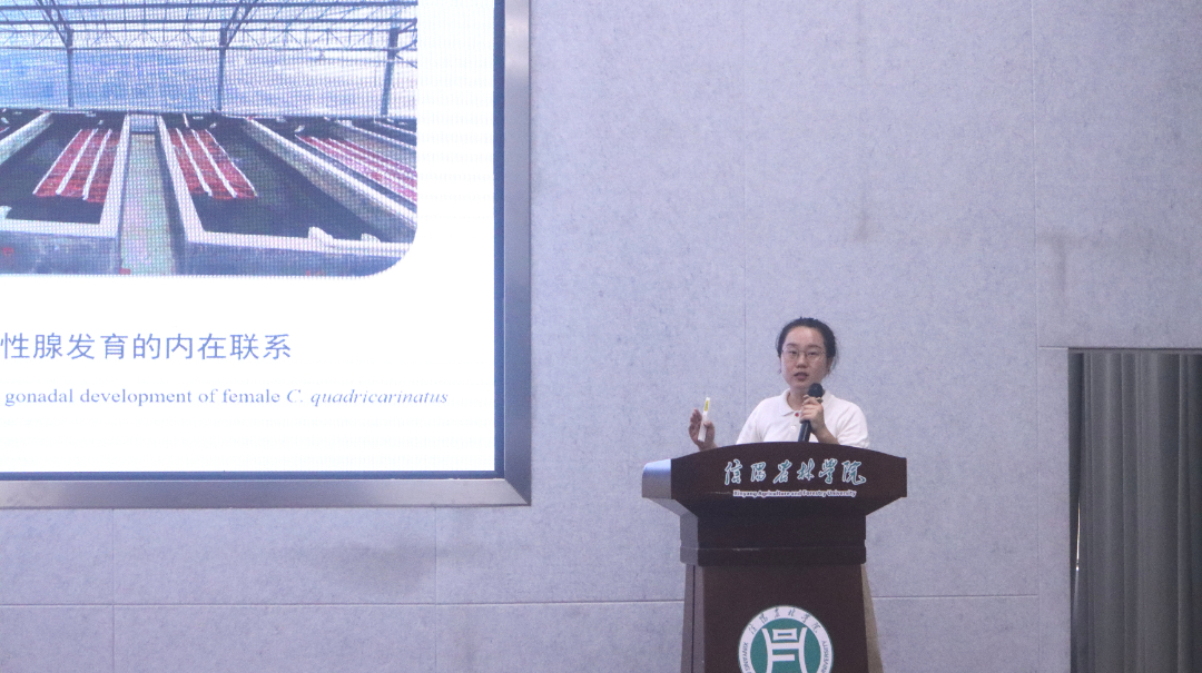 报告会上,徐畅副教授从红螯螯虾养殖现状和市场需求、亲体的营养需求及繁育质量问题、饲料磷脂源与红螯螯虾雌性亲体性腺发育的内在联系等方面,详细为大家阐述了红螯螯虾亲体健康繁育的营养调控策略。